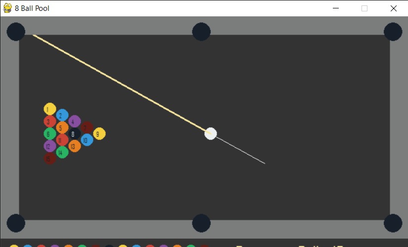 8 pool game was published in .exe format and open source. We used only one library (pygame). This game is a pc version of one of the most popular sport games. Certainly this game is so simple, physic in this game is also needs to improvement, but this game brings incredible pleasure to the players.
